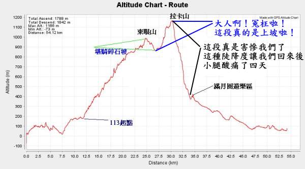 看我上面標示," 大人啊!冤枉啦!這段真的是上坡啦!" 大概有 250 公尺高!